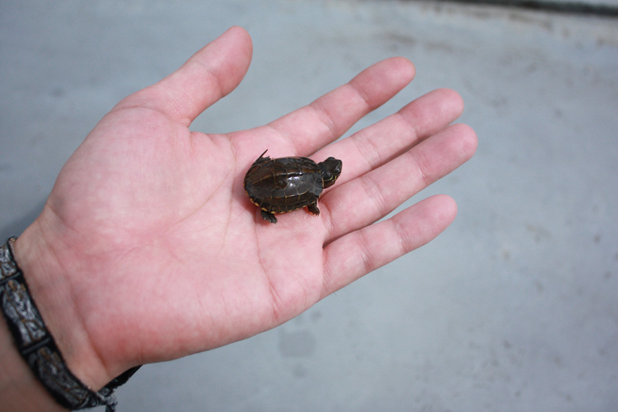 今回は、いつもお世話になってるmountain mountainのコーヘイ亀先生のところで産まれたのを里子にいただき…。いやーかわいい。しっぽが長くてトカゲみたい。クサガメに比べて甲羅の色・質感・模様・形が味わい深い。成長を見守ります。。。